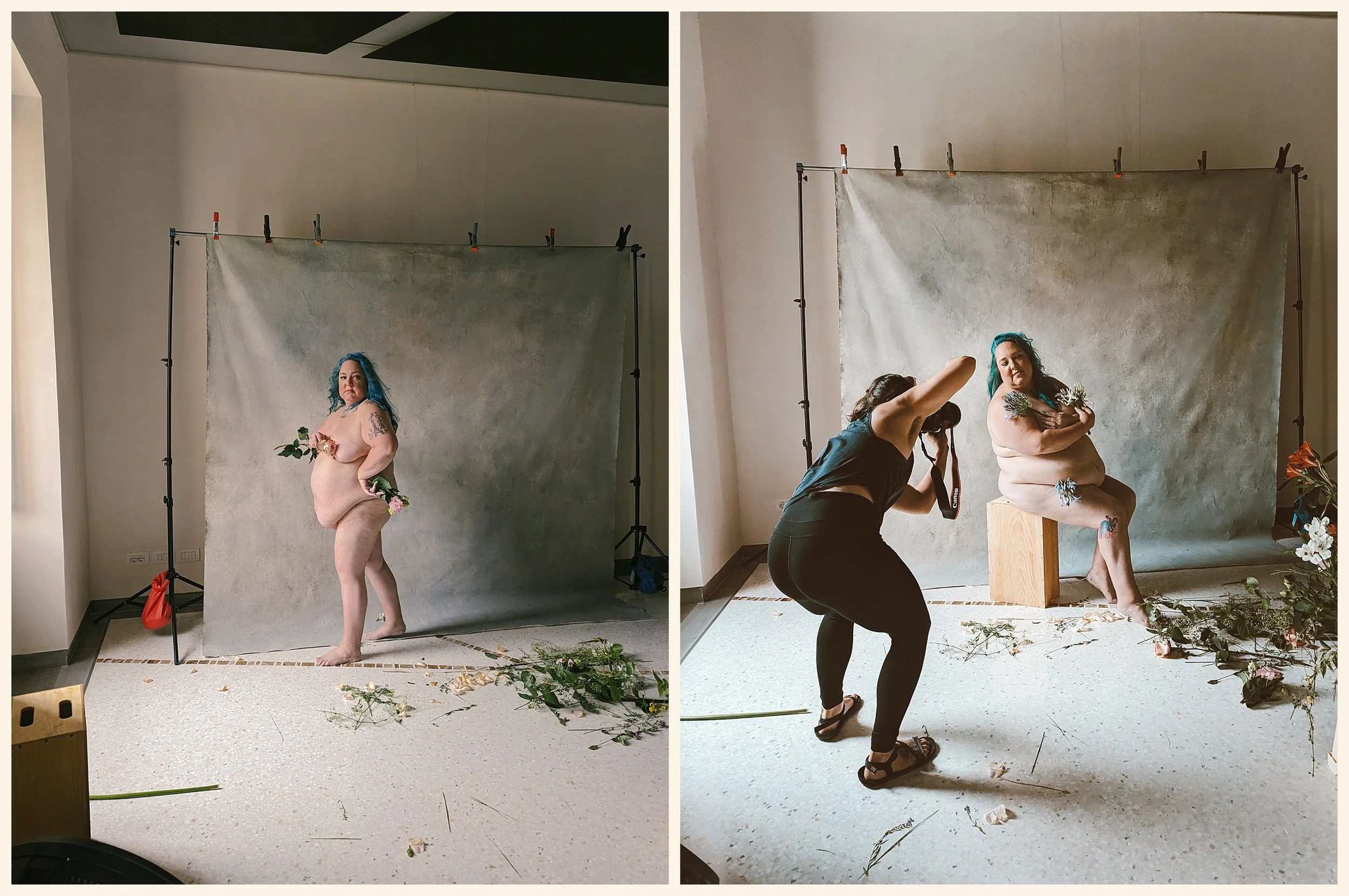 Our first group of attendees saw over 50 students from all over the world come into our space and learn from myself, Sue Bryce, & Kara Marie. I think people maybe thought it was a āphotography workshopā but if you know me, Kara Marie, and Sue - then you know we are going to talk about more than just the technical aspects of being a photographer - we are going to talk about what it means to HUMAN AND A PHOTOGRAPHER. On day 1 we poured our knowledge into them, each of us delivering a 60-90 minute keynote on our various topics. Myself on body image as it pertains to photography, Kara on burnout as it pertains to being a creative, and Sue on self value as it pertains toā¦well, being a human entrepreneur. It was a beautiful day full of tears, laughter, and connection (and of course, amazing food!). The second day I led a group of folks through a My Body Is Art Empowerment Experience on the lawn for those that wanted to partake and it was absolutely incredible. Then we had to rush them off to lunch so they could get on the bus and head to the Graphistudio factory to check out the glorious products and processes. Day 3 was all about shooting - well, my portion still delivered a 60 minute talk about HOW I get my clients to be vulnerable and alllll the work that takes place before I even take out my camera. The large group of students was split into 3 and we saw each of those smaller groups for about 2 hours where they had the opportunity to shoot, play, ask questions, and learn some more to help embolden their businesses. At the end of the last day, the group erupted into a huge dance party where I got my paparazzi on and took on the name POPPAā¦POPPARAZZI!
